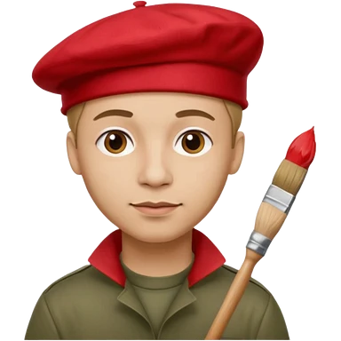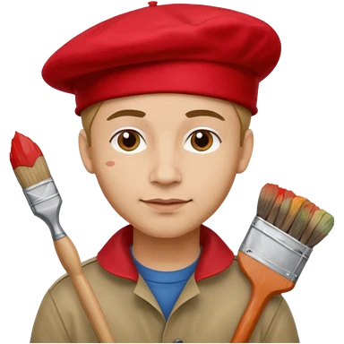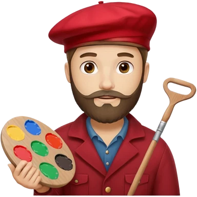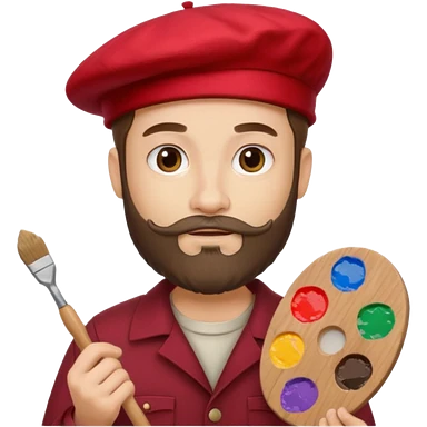 male artist with a mustache beret paint-splattered smock holding a brush emoji