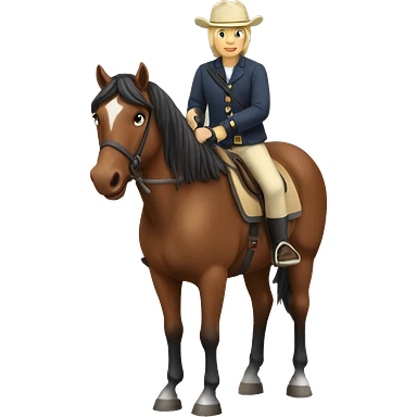 A brown hair, blue eyes girl riding a bay horse with black saddle and bridle emoji