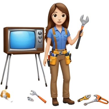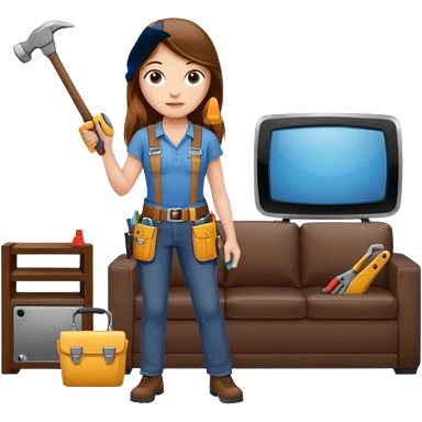 beautiful girl with long brown hair constructing new lounge room area with tv and couch emoji