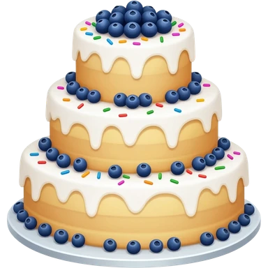 tiered elegant white wedding cake decorated with fresh blueberries and rainbow sprinkles and white ganache frosting emoji