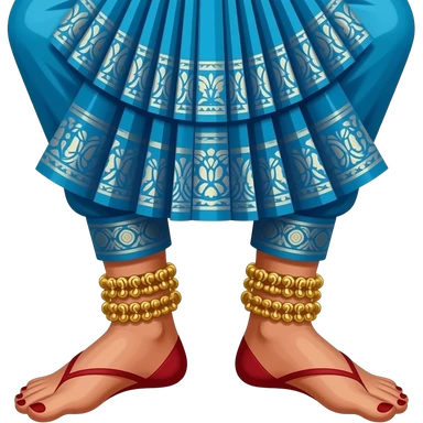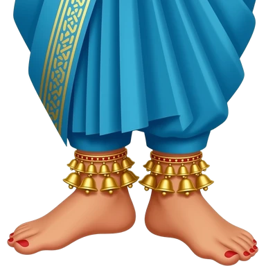 bharatanatyam ankle with blue costume wearing red alta and ghungroo two ankle in a dance position with proper ghungroo emoji