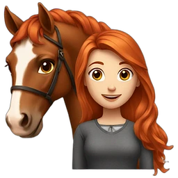 woman with long back hair and light blue eyes next to a sorrel horse emoji