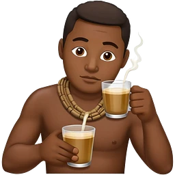 A tongan man with a name tag that says Tavake and he is drinking a bucket of kava emoji