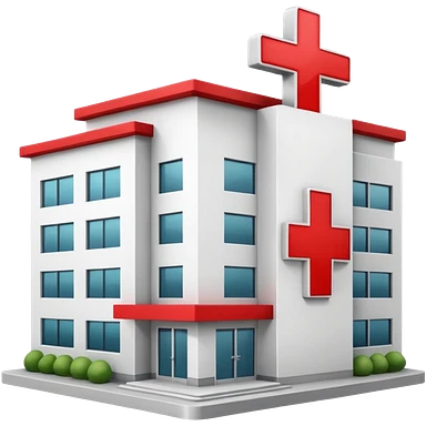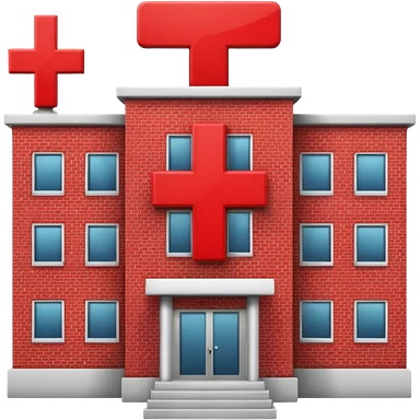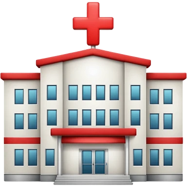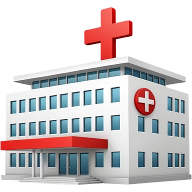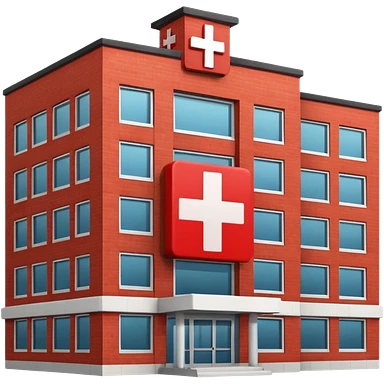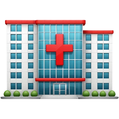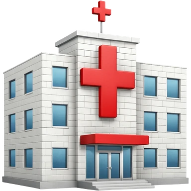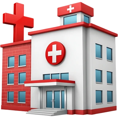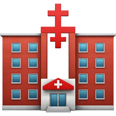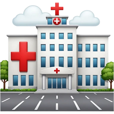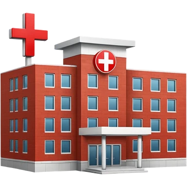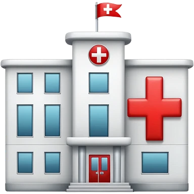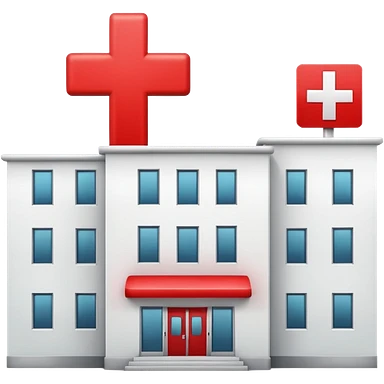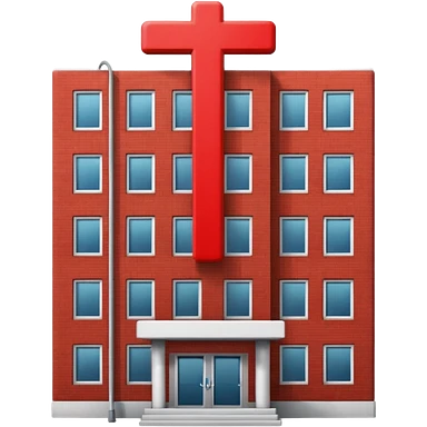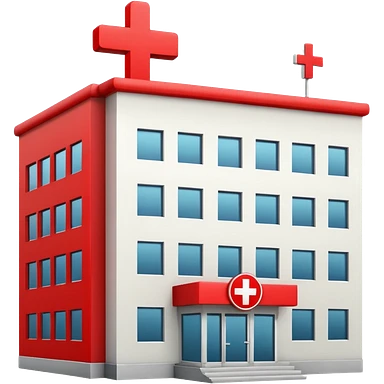 Hospital building with Thai flag waving, red cross medical symbol, Thailand flag with red white blue stripes emoji
