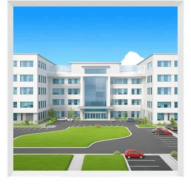 3d hospital outside, with text hospital emoji