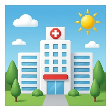 Hospital con la cruz arriba y superpuesto encima a la derecha un escudo con un tick dentro emoji