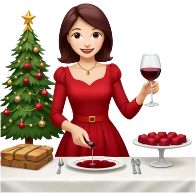 Hostess Wednesday Addams Barbie. very light skin face. Black lipstick and eyeshadow. Earrings matching necklaces. Long silky raven hair. Silk pajama separates black high heel. emoji | AI Emoji Generator