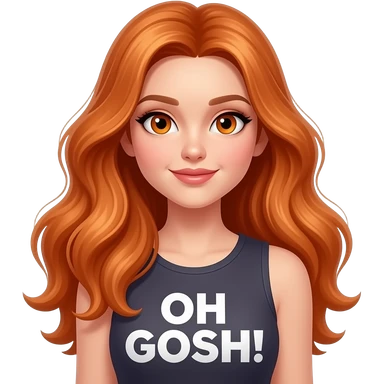 sexy girl with overlong ginger hair and ginger eyes a top with OH GOSH! written on it emoji