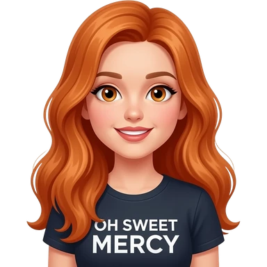 sexy girl with overlong ginger hair and ginger eyes a top with OH SWEET MERCY written on it emoji