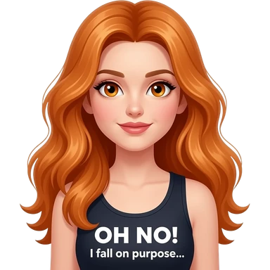 sexy girl with overlong ginger hair and ginger eyes a top with OH NO! I fall on purpose... written on it emoji
