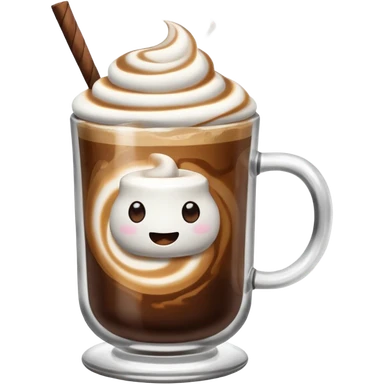 hot coffee in the glass with marshmello emoji