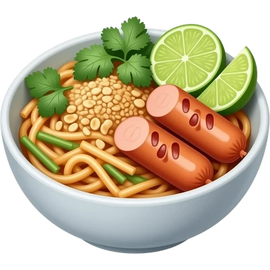 appetizing pad thai noodles with lime wedge, peanuts, shrimp emoji