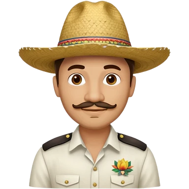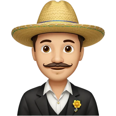 A happy, light skinned, Colombian man, with a small not connected mustache, a small gotee, wearing a Colombian Sombrero Voltiao with black rings on it, and wearing a white dress shirt emoji