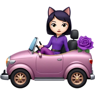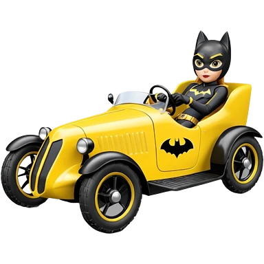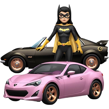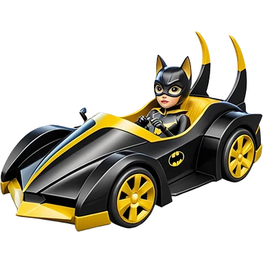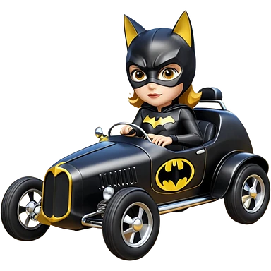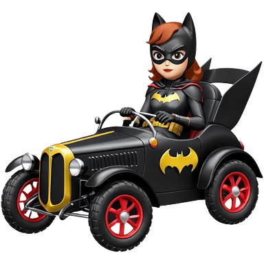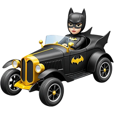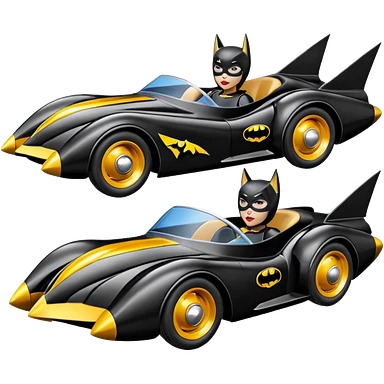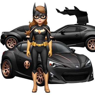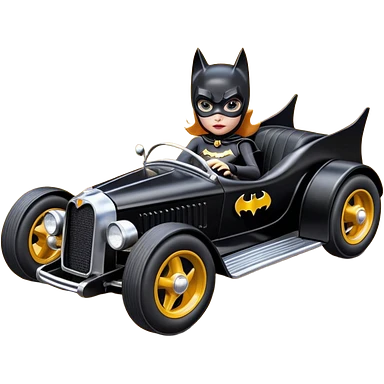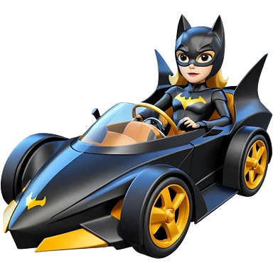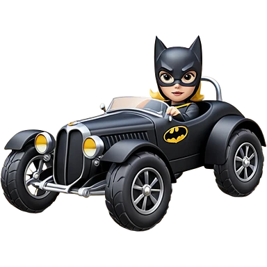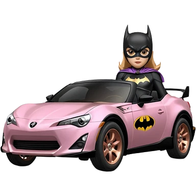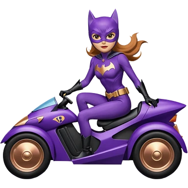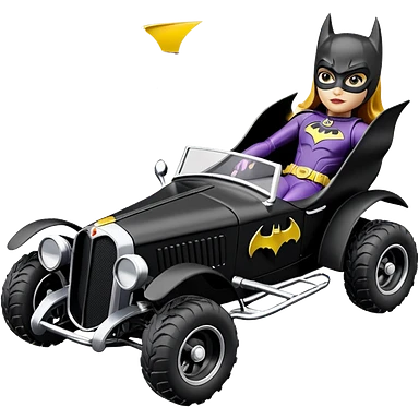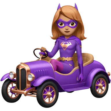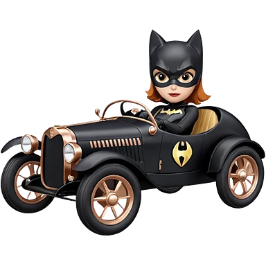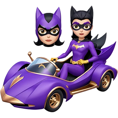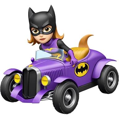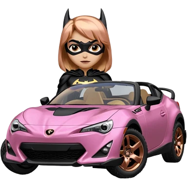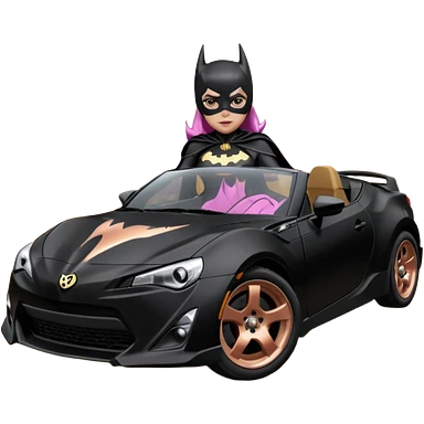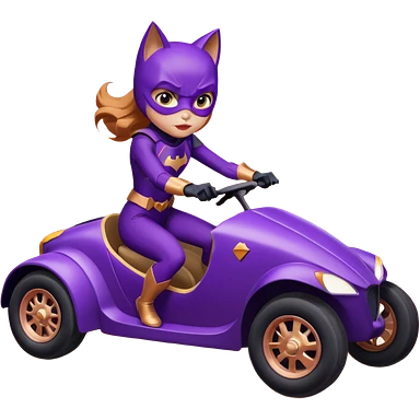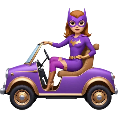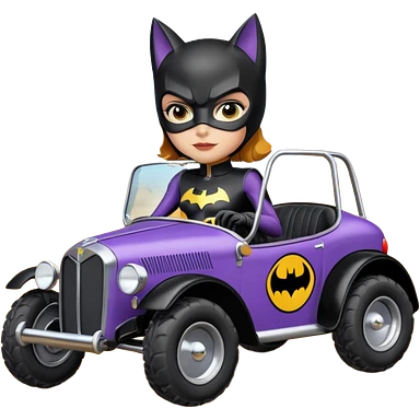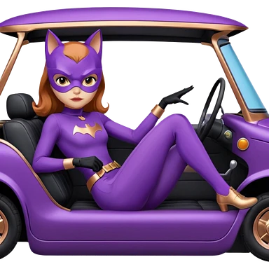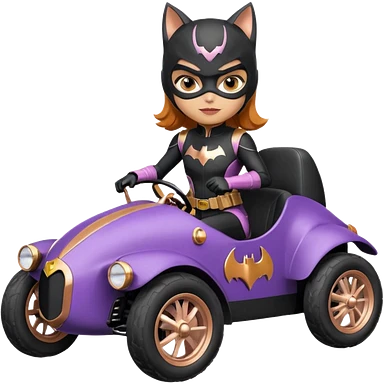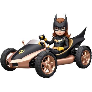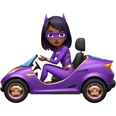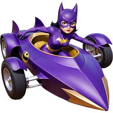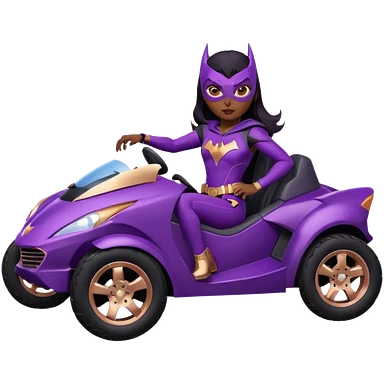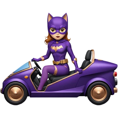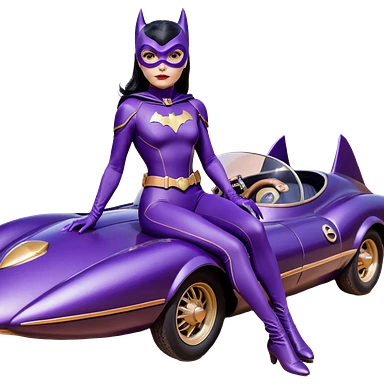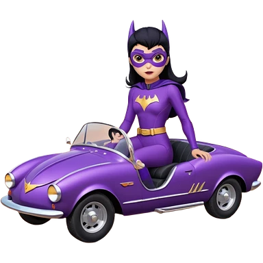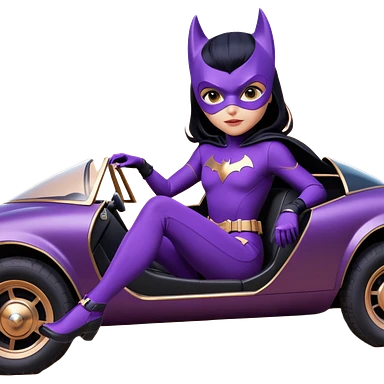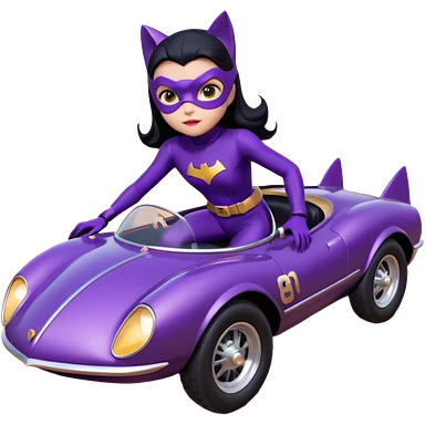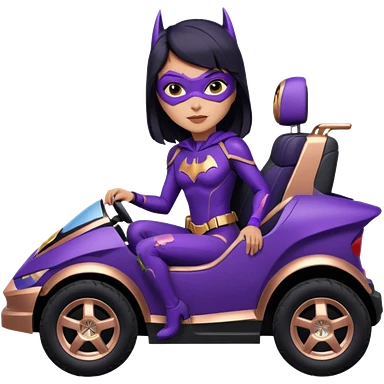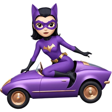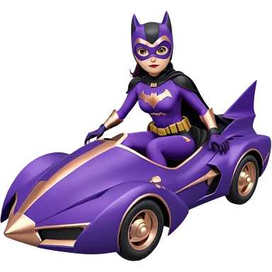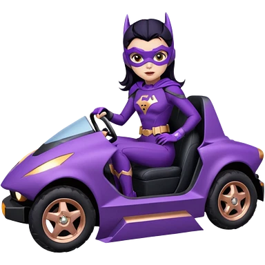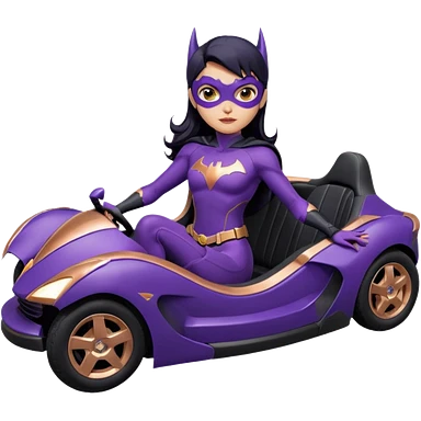Hot full size real-appearance racing action BatGirl’s feminine midnight-purple tight outfit sixty’s tv show 1992 stealth retro cat burglar sporty petite off-road pursuit hovering black hover cruiser car rose gold accents (black hair,reclined and relaxed seating position and attitude) desertemoji
