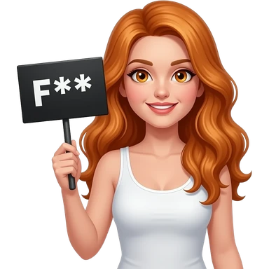 sexy girl with long wavy ginger hair and ginger eyes wearing a white tanktop is holding a black colored sign with EXCUSE ME! Why are you so F***ING HOT?written on it emoji