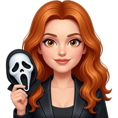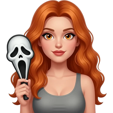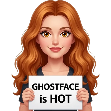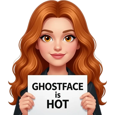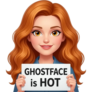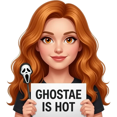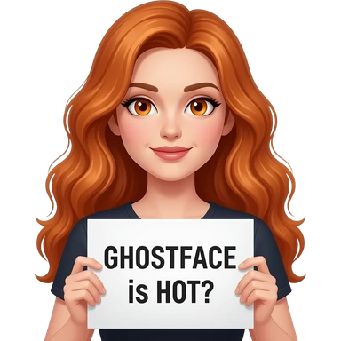 sexy girl with long wavy ginger hair and ginger eyes is holding a GHOSTFACE is HOT sign emoji