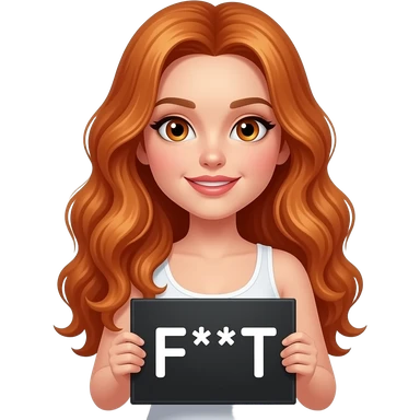 sexy girl with overlong ginger hair and ginger eyes a top with Why are you so F***ING HOT? written on it emoji