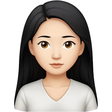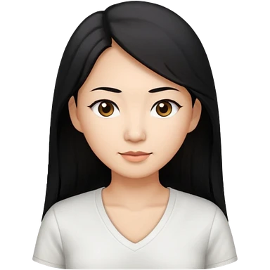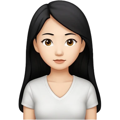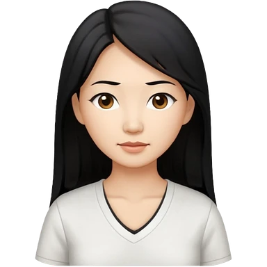 asian mom with long black hair and big brown eyes emoji in a white v neck shirt emoji