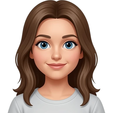 hot brunette sales director who is very cool and wears stylish clothes, blue eyes, holding a phone emoji