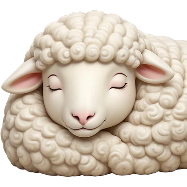 Meme-Worthy Cute Sleeping Sheep Portrait Emoji, Head resting peacefully with a contented smile, showcasing a robust build and a luxuriously soft white fleece, eyes shut in a serene, restful nap, Simplified yet hilariously adorable features, highly detailed, glowing with a soft, drowsy light, high shine, relaxed and utterly lovable, stylized with an air of playful laziness, bright and heartwarming, soft glowing outline, capturing the essence of a comically sleepy sheep, so meme-worthy it feels like it could instantly become the next viral sensation of adorable slumber! emoji