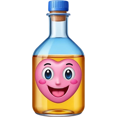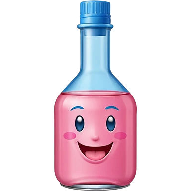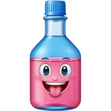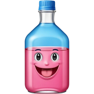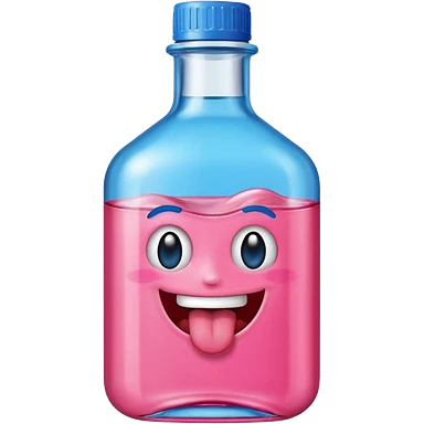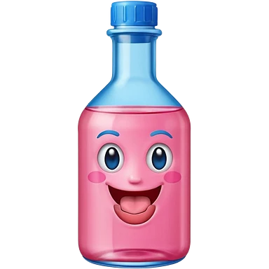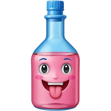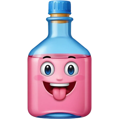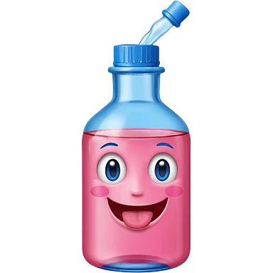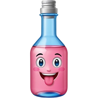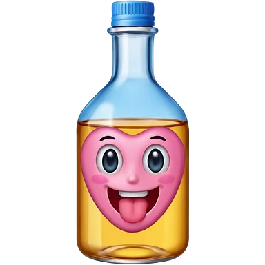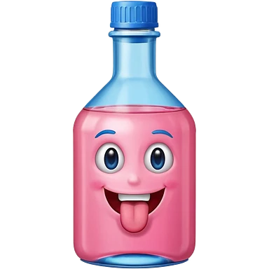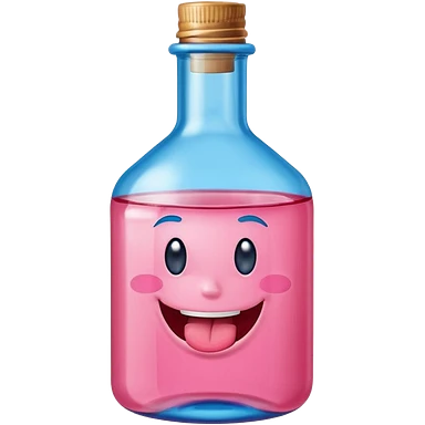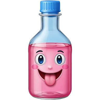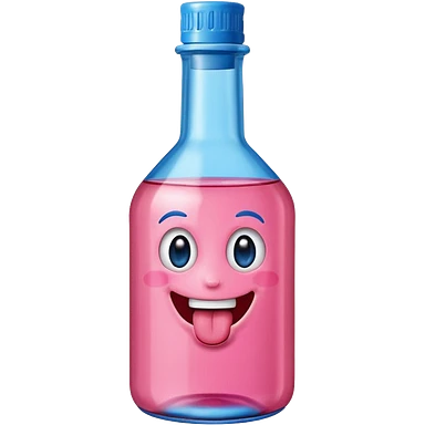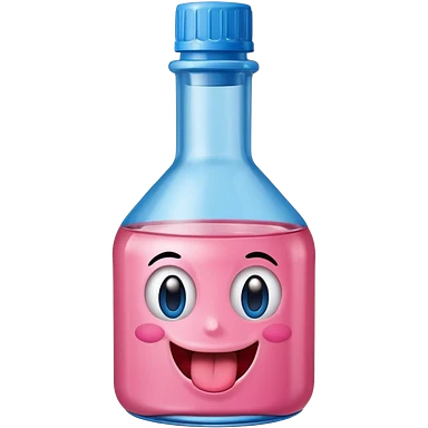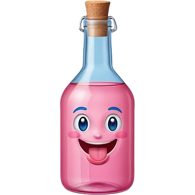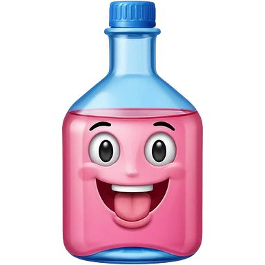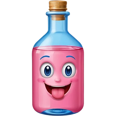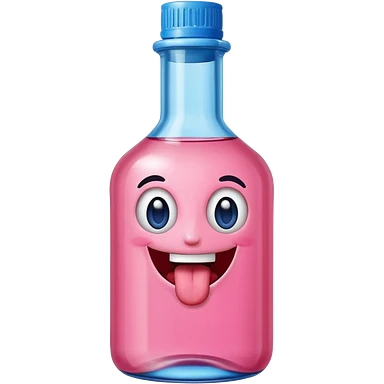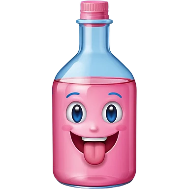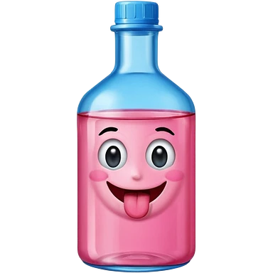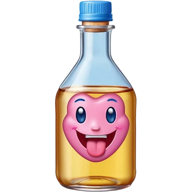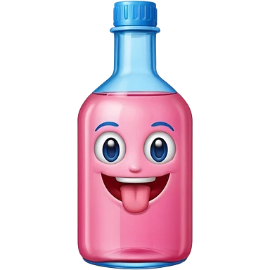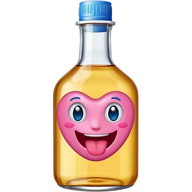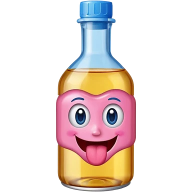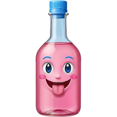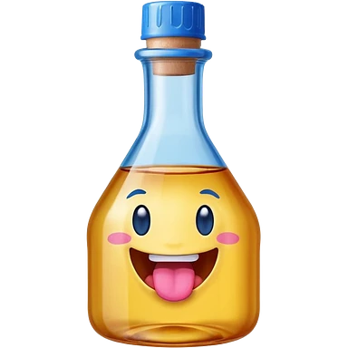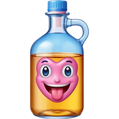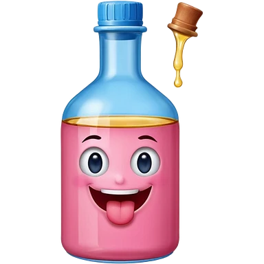 Smiling bottle of oil pink with silly face tongue out blue top emoji