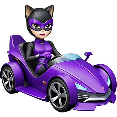 Hot wheels comical Cat Woman’s stealth burglar sporty futuristic pursuit mobile two seater car (reclined seating position) emoji