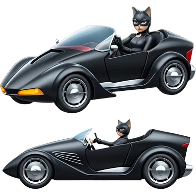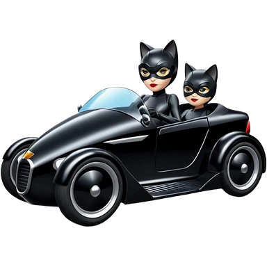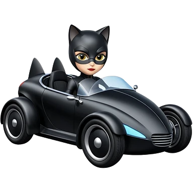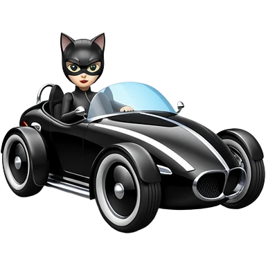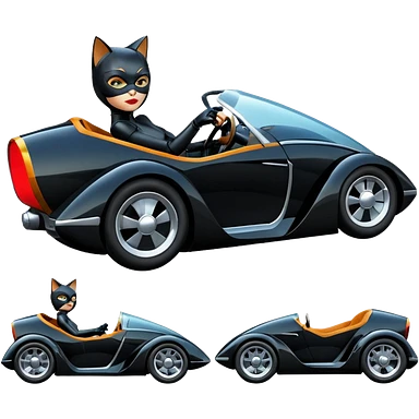 Hot rod comical Cat Woman’s stealth burglar sporty futuristic pursuit mobile two seater car (reclined seating position) emoji