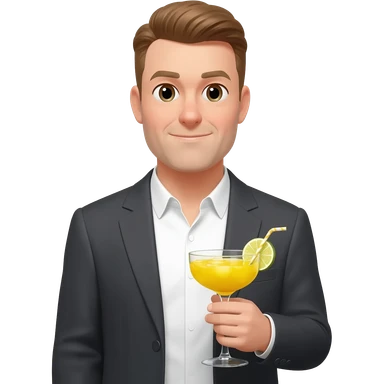 portrait of a man in a suit with a yellow cocktail emoji