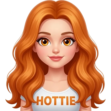 sexy girl with overlong ginger hair and ginger eyes a top with HOTTIE written on it emoji