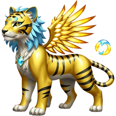 Shiny Glowing Cute Smol Legendary Epic Solgaleo-Pyroar-Torracat-Luxray-Tigress-Houndoom-Liger-Hybrid-Fakemon-hybrid-Creature (full body) emoji