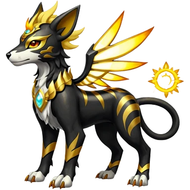 Solarpunk solar aesthetic shiny glowing divine lighting glimmering shimmering Houndoom-Solgaleo-Tigress-Luxray-Trico-Gryphon-fusion (full body) emoji