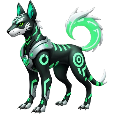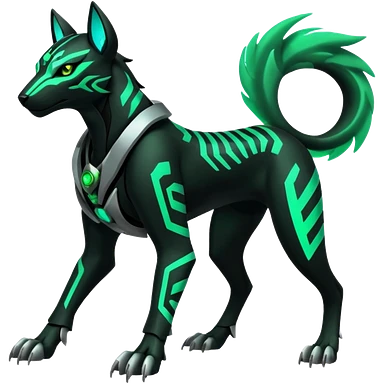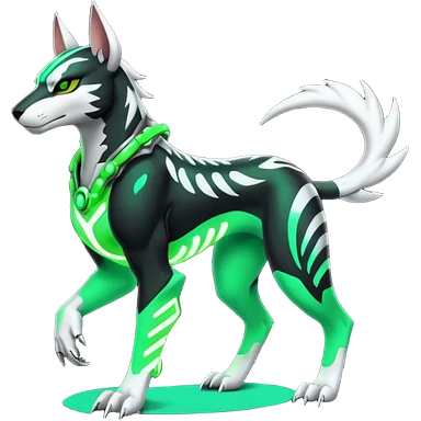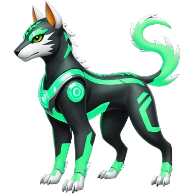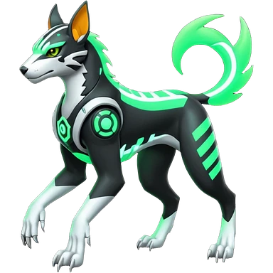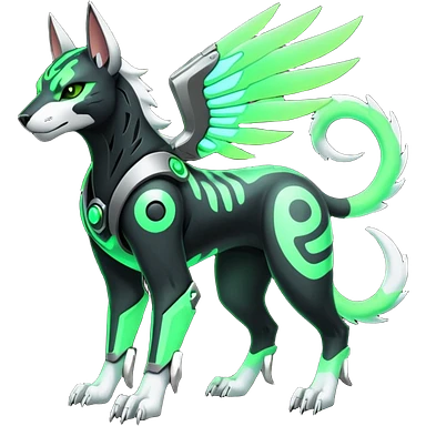 Black and green cyberpunk intricate neon glowing grey white futuristic cyborg-Houndoom-Tigress-Luxray-Gryphon-fusion (full body) emoji