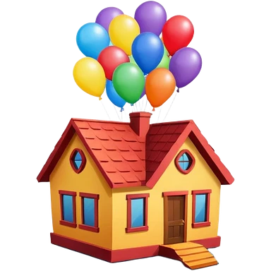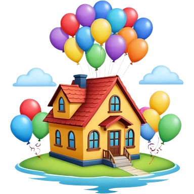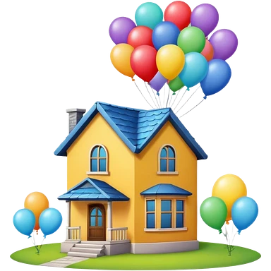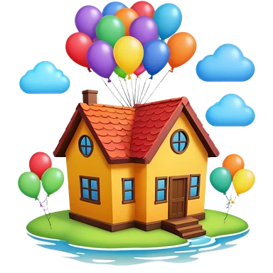 house flying with balloons emoji