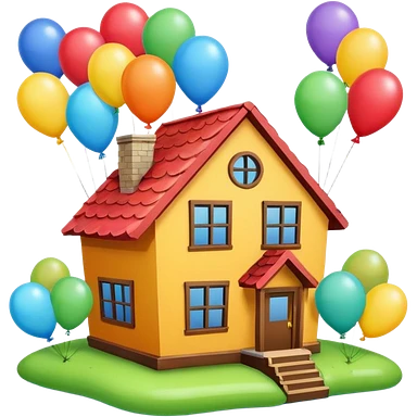 house with balloons on top emoji
