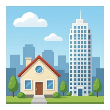 house, tall office building on a plain background, no sun, no moon, no foliage, no trees, no clouds, remove trees emoji