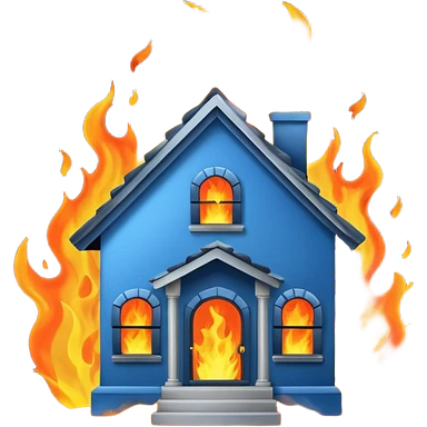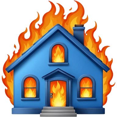 blue house burning down emoji