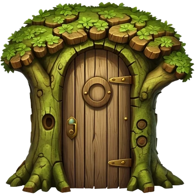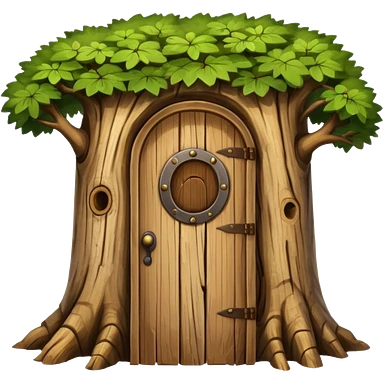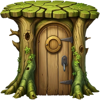 large and old tree trunk with door emoji