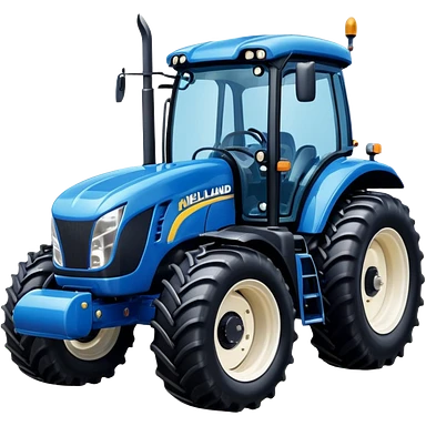 New Holland Roll-Belt 560 (2018) – Cinematic-realistic New Holland Roll-Belt 560 baler, its blue body steadily compressing golden hay into tight, round bales. The rhythmic motion of the machine continues as dust swirls in the afternoon heat, with rows of freshly cut grass stretching toward the horizon. emoji