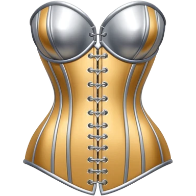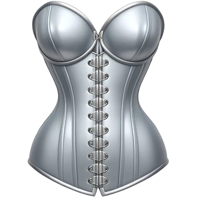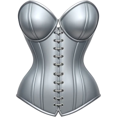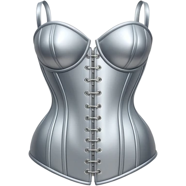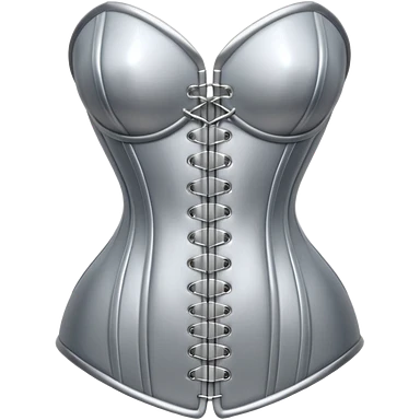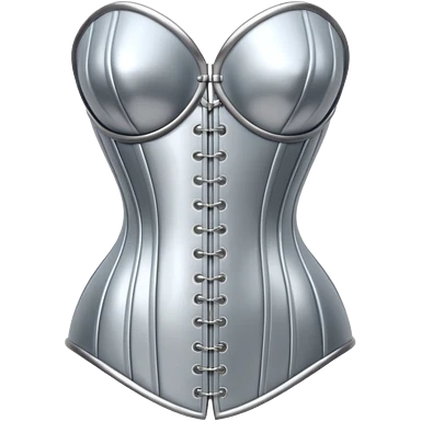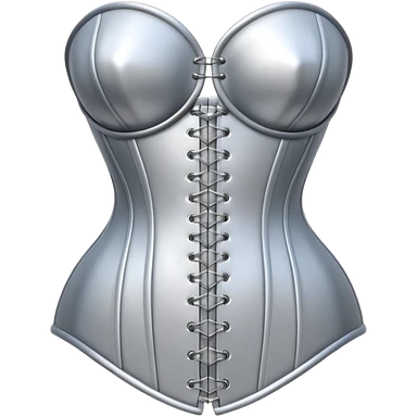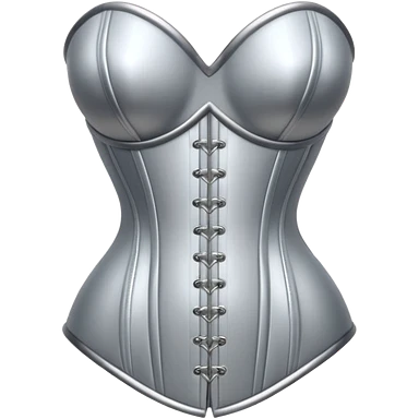 A luxury corset emoji made of silver chrome, smooth metallic curves, minimal fashion silhouette, glossy reflections, sensual high-end aesthetic, iOS emoji style, centered, clean white background emoji