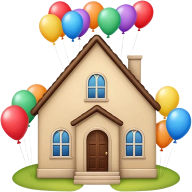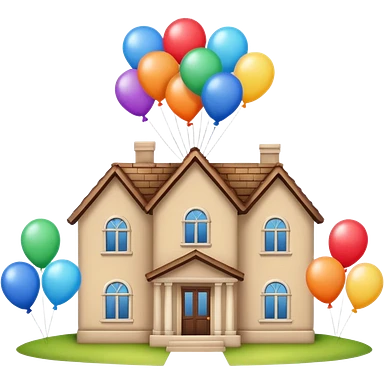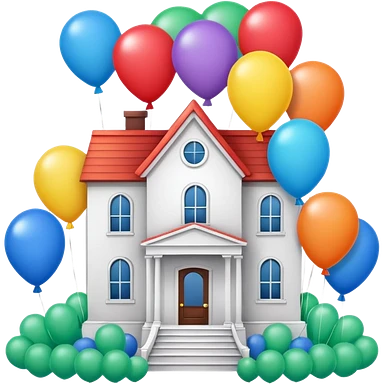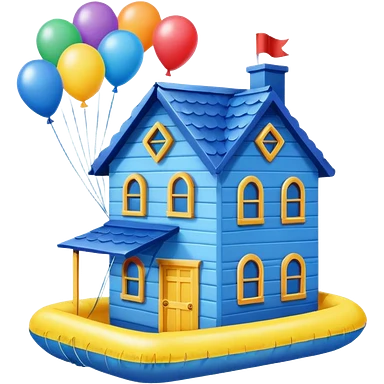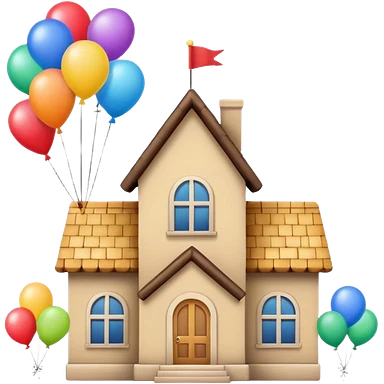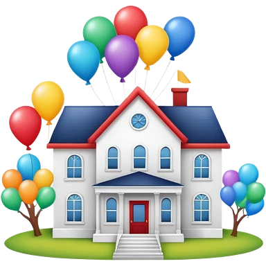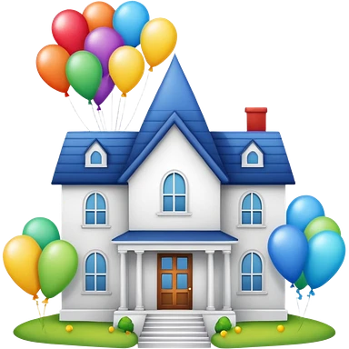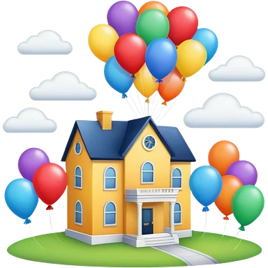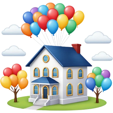 Lots of tiny Balloon Angel Clips pick up the one last floating house on the surface of the sea to join a whole cluster of houses floating on the clouds in the sky emoji