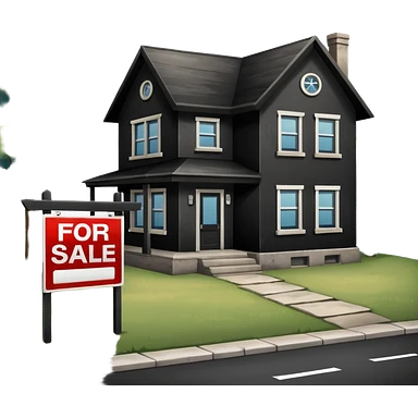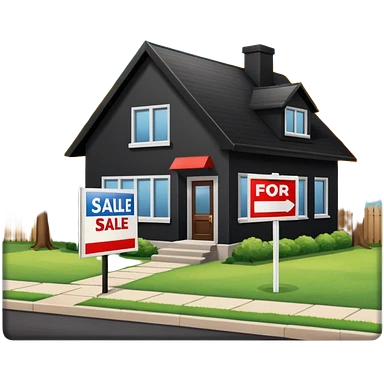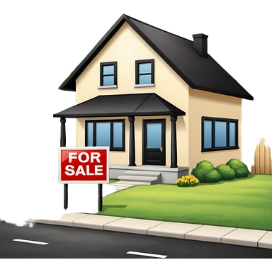 pic of house with for sale sign in yard, next to a bank emoji