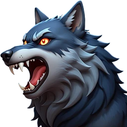 Howling wolf with black fur green eyes and three chrome earrings emoji