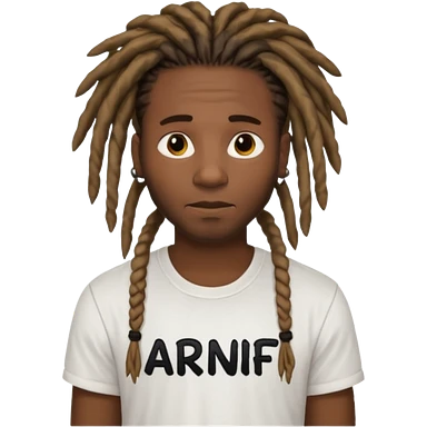 black guy wearing a white shirt saying ARNF in black text in the middle chest while having dreads emoji