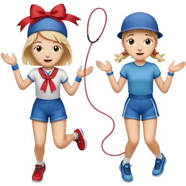 three big emojis: 👧🏻🎀 (doll girl), 😀👕4️⃣5️⃣6️⃣🤾 (player jumping rope in tracksuit 456), 👦🏻🧢 (boy with cap). emoji