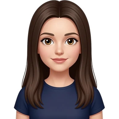 HT - dark brown eyes, pale freckles, very pale white skin, make up, widows peak, dark brown long hair in a high bun, dark blue dress, denim jacket emoji | AI Emoji Generator