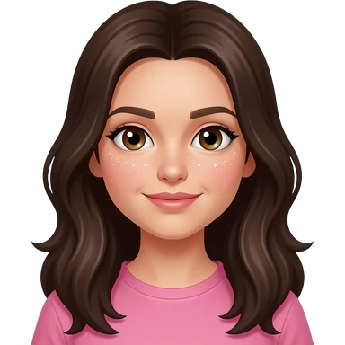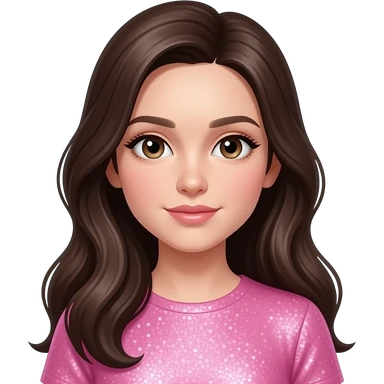 HT - hazel eyes, pale skin, dark brown long hair, glitter on face, pink clothes emoji