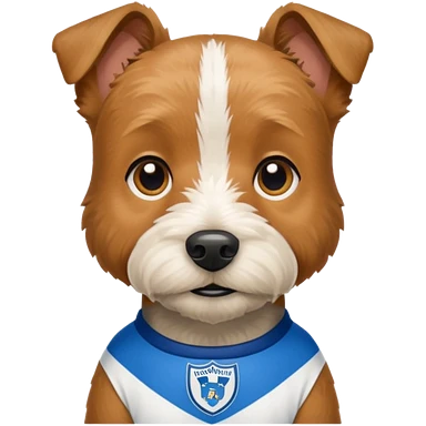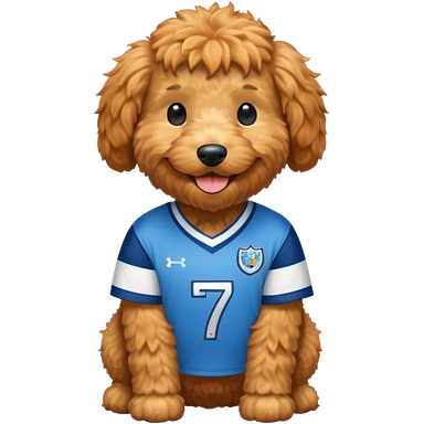 Ginger golden doodle with Huddersfield town shirt on emoji
