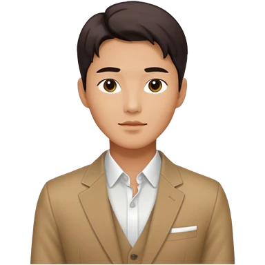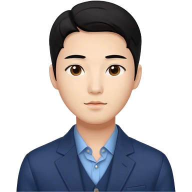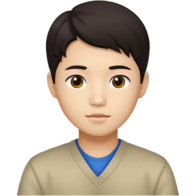 Asian guy wavy Korean hair, dressed stylishly, looking demure emoji
