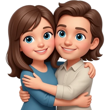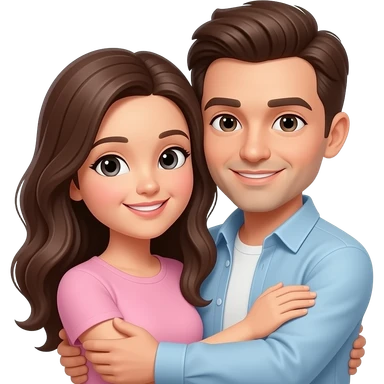 Hug brunette man and brunette woman emoji
