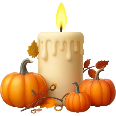 Small tiny pumpkins, vines, leaves, one big candle, autumn vibes aesthetics emoji